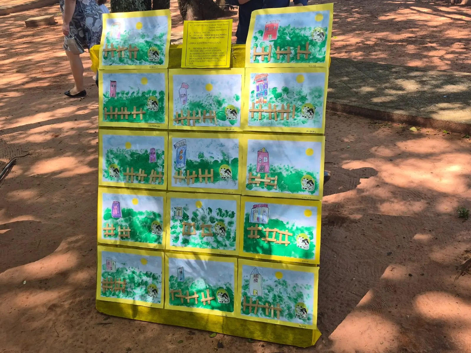 O Bosque da Biblioteca Municipal se transforma em uma galeria a céu aberto, onde as memórias e os sonhos de Paraguaçu Paulista ganham vida através das aquarelas das crianças da EMEI Dona Cota.